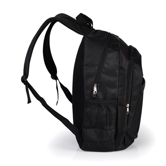 Mochila preta em Poliester 600D/1680D. Conta com alças para as costas, alça para as mãos, compartimento para notebook de até 17", 3 bolsos externos com zíper e 2 bolsos externos em tela. Capacidade: 25 litros (Volume). Utilidade do Produto: Uma mochila ideal para quem precisa de conforto, praticidade e organização no trabalho, nas viagens e no dia a dia.