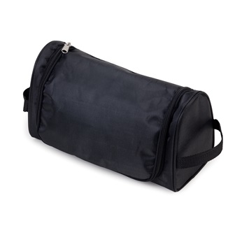 Confeccionada em microfibra preto, possui uma alça de mão nas duas laterais, três divisórias em tela elástica e um bolso interno em tela com zíper. Acompanha gancho em metal para pendurar. Ideal para viagens. (imagem ilustrativa, não acompanha outros produtos)
