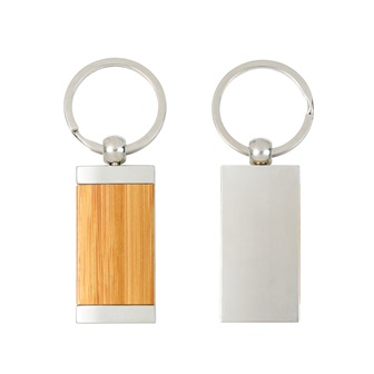 Confeccionado em metal cromado brilhante com detalhe frontal em bambu, possui argola com 3,3cm e está acomodado em uma embalagem interna aveludada e caixa kraft com tampa fechada em cordão elástico preto para presente.