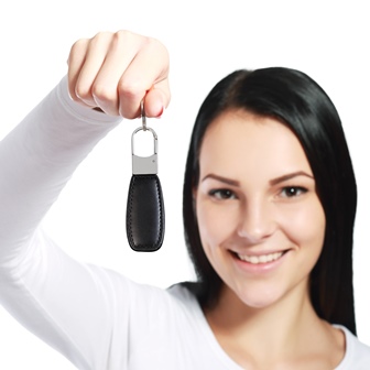 Uma gravação a Laser em um lado do chaveiro