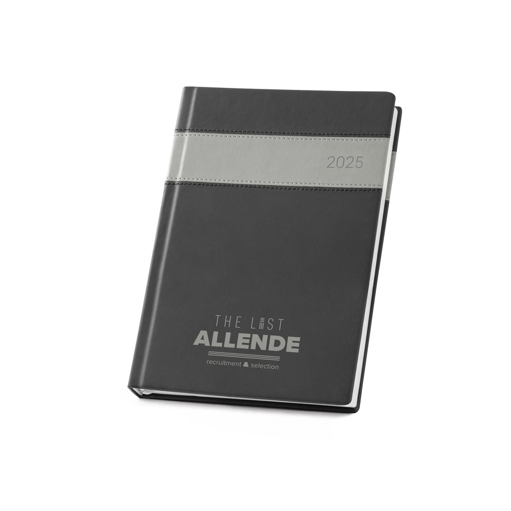 Agenda A5 em couro sintético com marcador em fita.