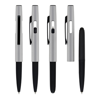 Conta com tampa com abertura nas laterais, acabamento fosco, clipe em Metal e ponteira touch em Silicone preto.