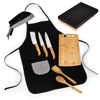 ME 21863 - KIT PARA COZINHA EM BAMBU / INOX COM AVENTAL E TOUCA GOURMET - 8 PÇS