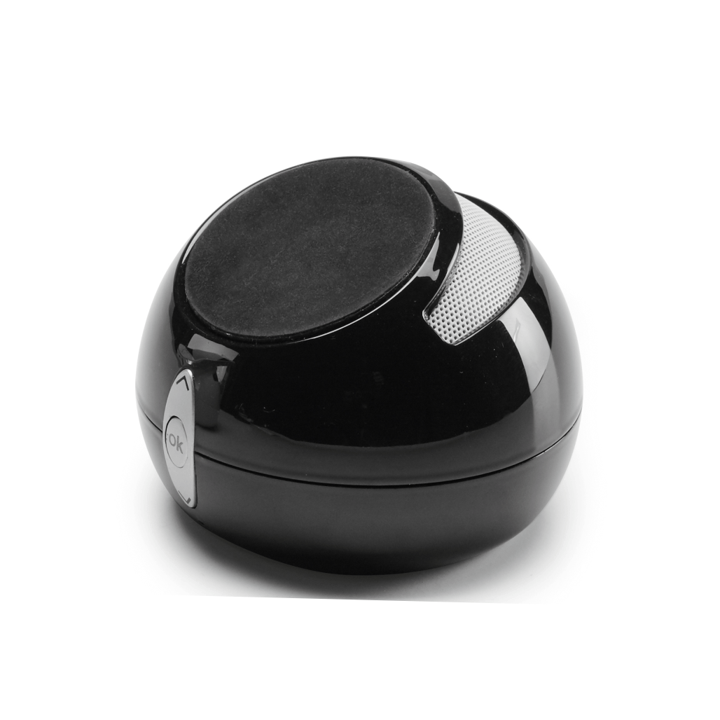 Caixa de som com microfone. em ABS, com transmissão por bluetooth, ligação stereo 3,5 mm e leitor de cartões TF, com 3W/4? e autonomia até 3 h. Função para atender chamadas, controle de volume e conexão à playlist do dispositivo móvel. Com apoio antideslizante para celular. Incluso cabo USB para carregar. Fornecida em caixa presente. ø85 x 66 mm | Caixa: 93 x 93 x 85 mm