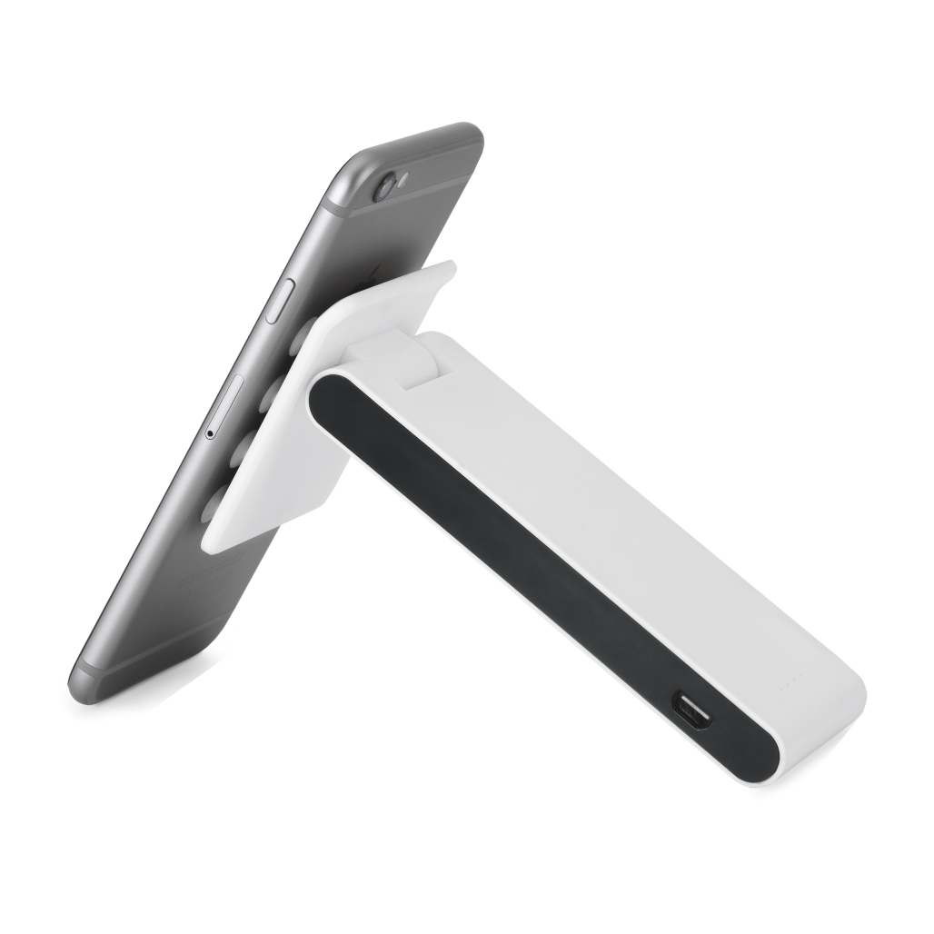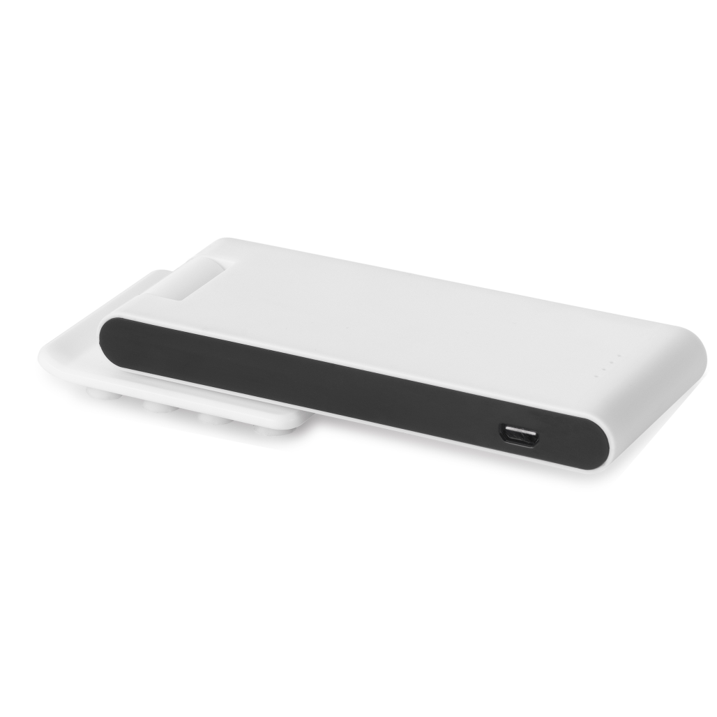 Bateria portátil. ABS. Com ventosas na base. Bateria de lítio. Capacidade: 4.000 mAh. Tempo de vida ? 500 ciclos. Com entrada/saída 5V/1A. Incluso cabo USB/micro USB para carregar a bateria.